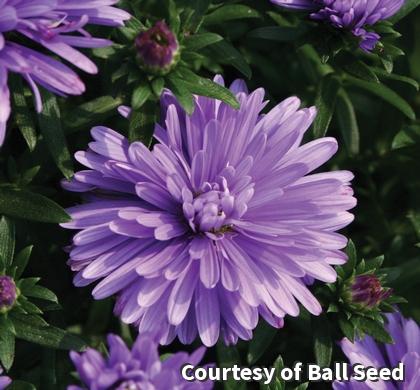 This early double flowering aster provides an abundant amount of 1 1/2" daisy like blooms. They are fragrant, attract butterflies and are deer resistant. Royalty series are bred for their abundance of flowers and compact plants.