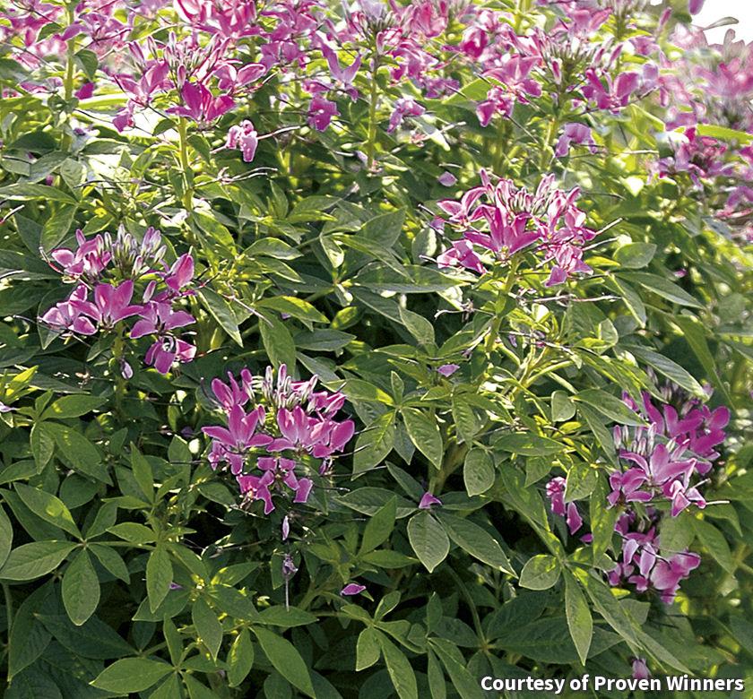 Stunning colors and patterns for full sun and shade. A low maintenance, high impact plant. Size varies by variety. Cleome Senorita are bred for being thornless, non sticky and odorless.