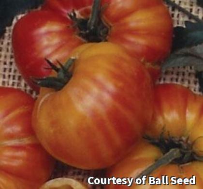 A bicolor variety featuring large yellow fruit with streaks of red throughout. The fruit often weighs more than 1 1/2 lbs. and has a luscious, sweet flavor.