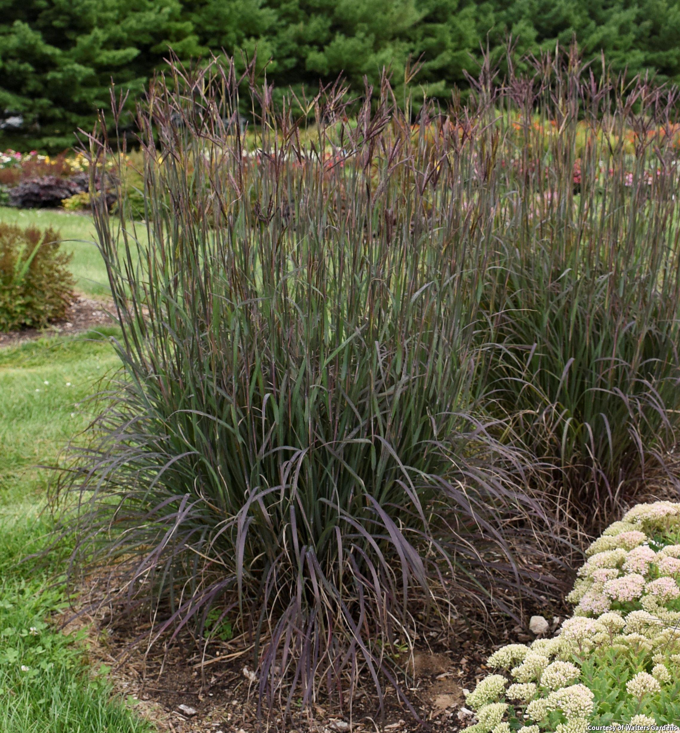A super showy grass that provides height and color to the garden. The foliage emerges deep green to dark purple and matures to near black by fall. The ornamental seed heads add late season interest. Use as an accent or plant in masses in sunny sites.