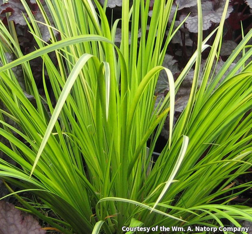 A grass-like perennial with shiny gold and green striped leaves that brighten garden spaces. An excellent accent plant for beds, borders and containers. Enjoys moist areas, but tolerants some dryness.