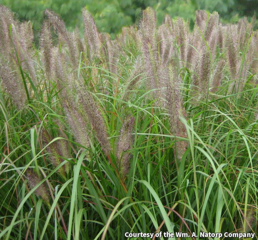 An early flowering fountain grass with large bottlebrush plumes that are smoky purple and remain attractive for several months. Excellent fall color adds to the show. Easy to grow and tolerant of drought and poor soils.