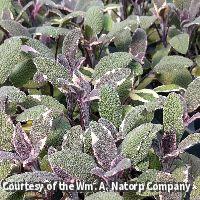Sage is a hardy erect perennial with leaves that are gray-green, rough yet mature to a soft silvery gray. The aroma is fresh and the flavor is savory and has hints of peppermint. Variegated Sage has purple, pink and white leaves with lavender flowers.