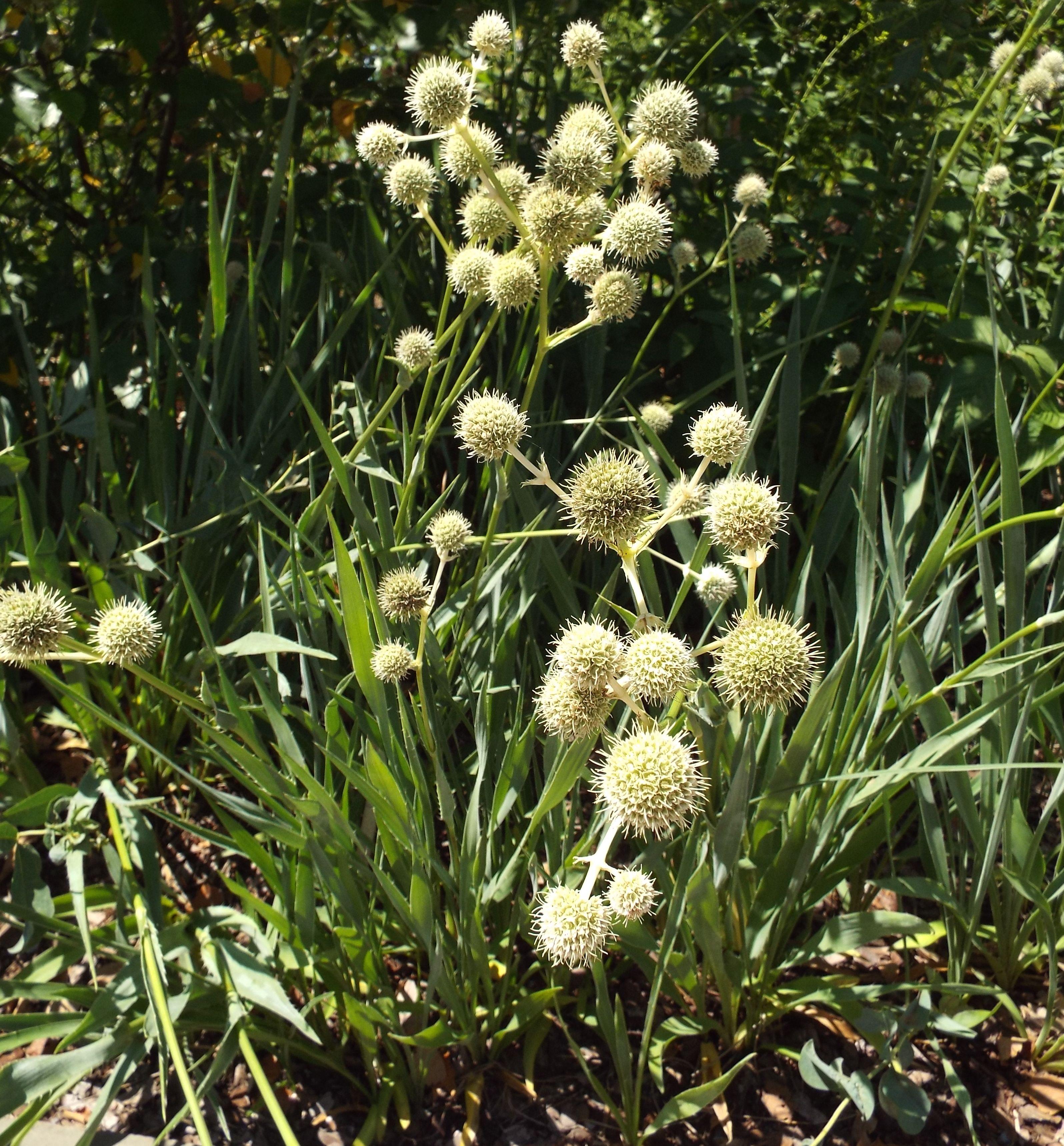A tough, native perennial with spiny, blue-green, sword-shaped leaves. In summer, thistle-like flower heads rise above the foliage. This curious plant enjoys sunny, well-drained sites and is great for meadow gardens and at the back of beds.