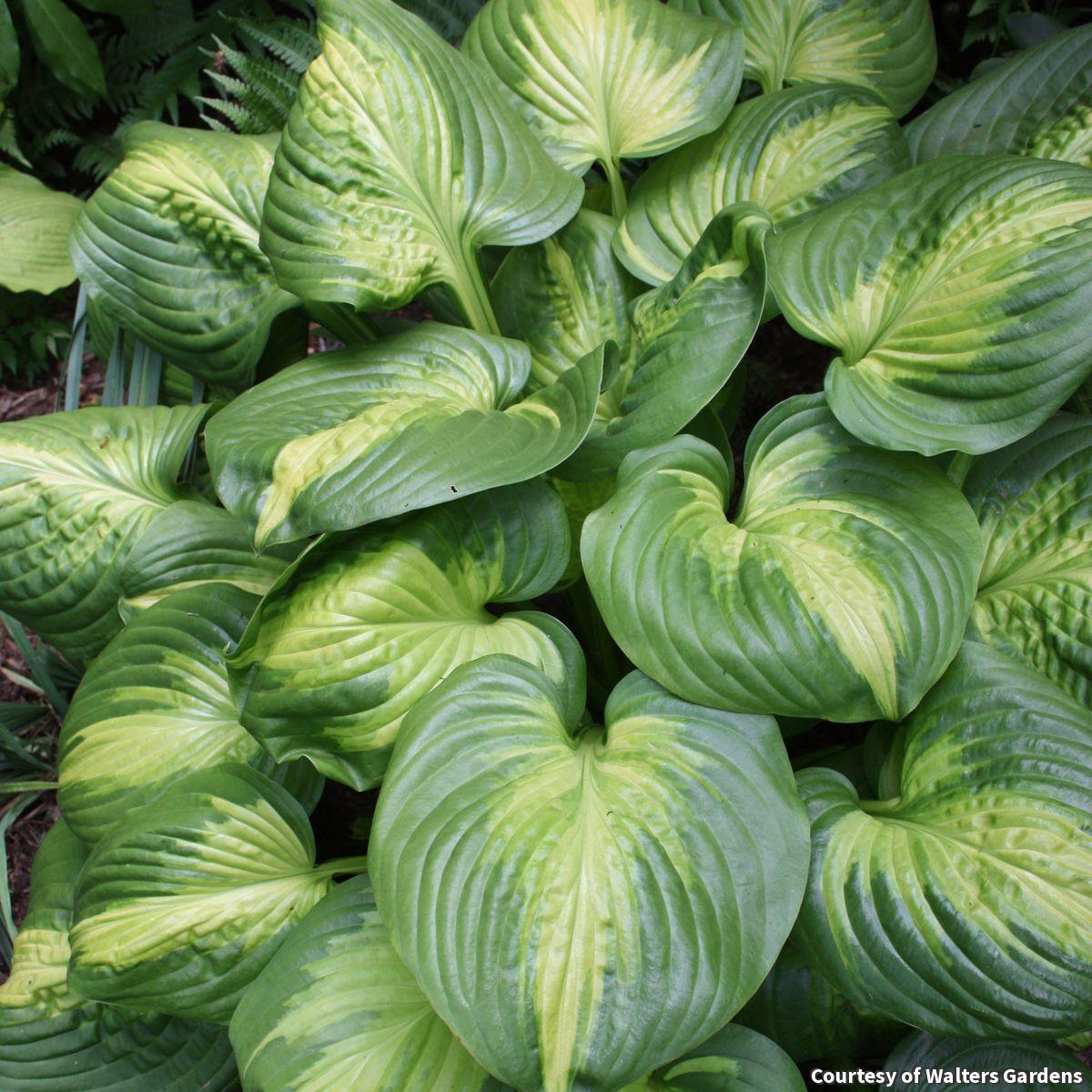 Large rounded leaves are bright gold with wide, dark green edges. As the leaves mature, they become domed shaped. Fragrant, near-white flowers add late summer interest. It adds beautiful color and interest to shady sites.