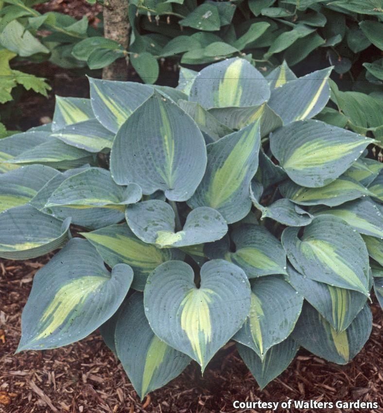 Intense blue leaves are lightly touched by a mix of chartreuse to yellow and green centers. The thick leaves are held slightly upright creating a unique look. It creates a lovely accent or focal point for shady beds and borders.