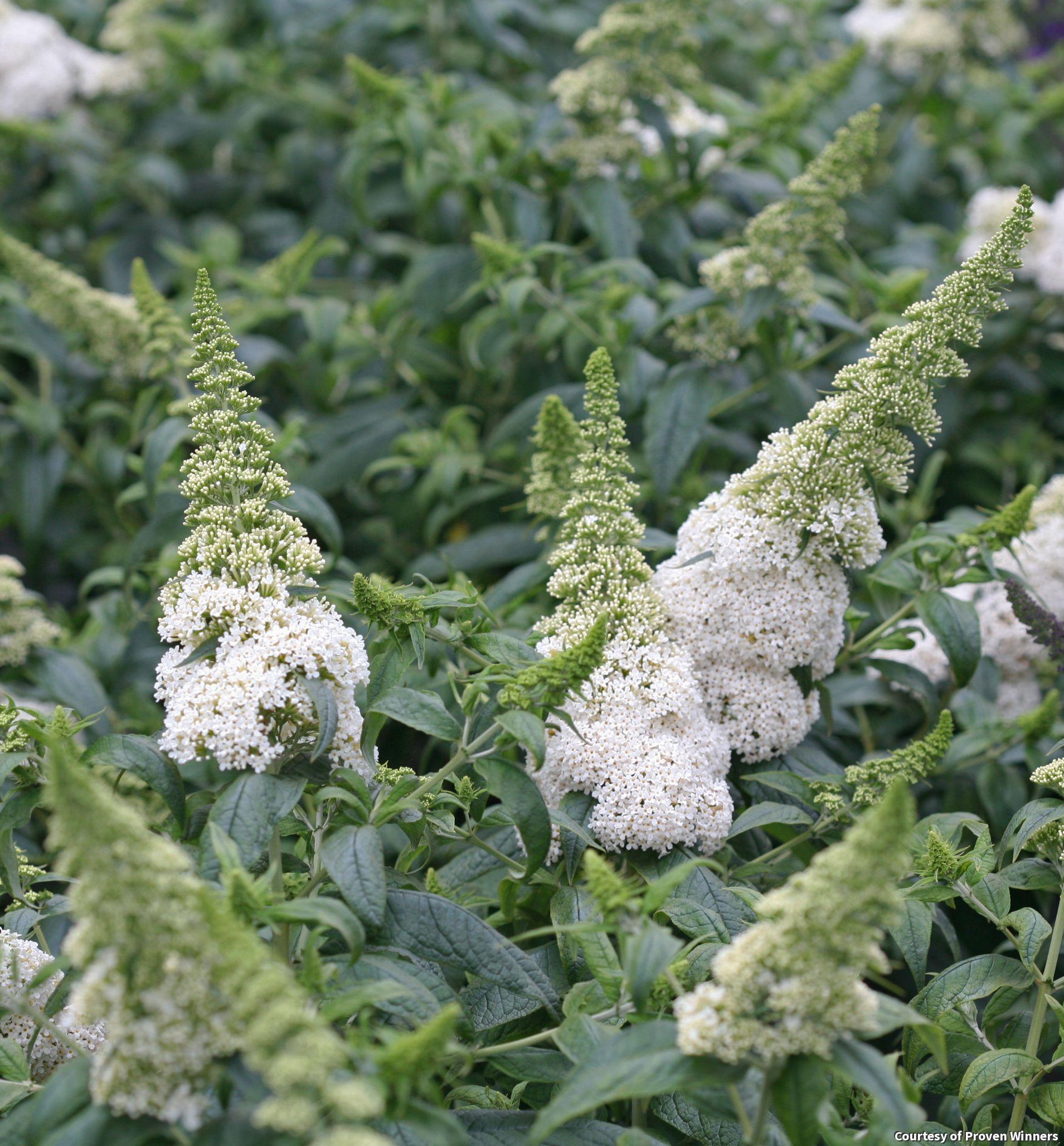 A compact variety with large, full flowers that bloom continuously from early summer through frost. The large crisp white blooms are eye catching at the front of shrub borders and in sunny perennial beds. They attract butterflies and hummingbirds.