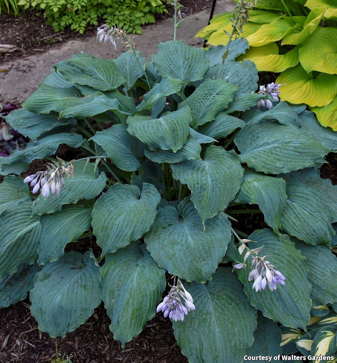 A wide Hosta with heart shaped, thick, corrugated leaves with wavy edges. Lavender flowers accentuate the foliage in summer. Combine this one with Lenten Rose and other Hostas in shade gardens and woodland gardens.