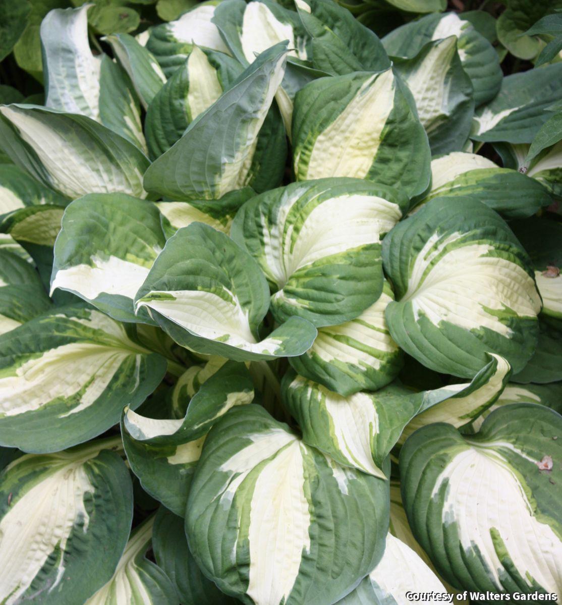 A bold, variegated variety with dark green edges and a light colored center with light yellow accents. Lavender summer flowers add additional interest. It has a vigorous growth rate and brightens shady beds, borders and woodland sites.