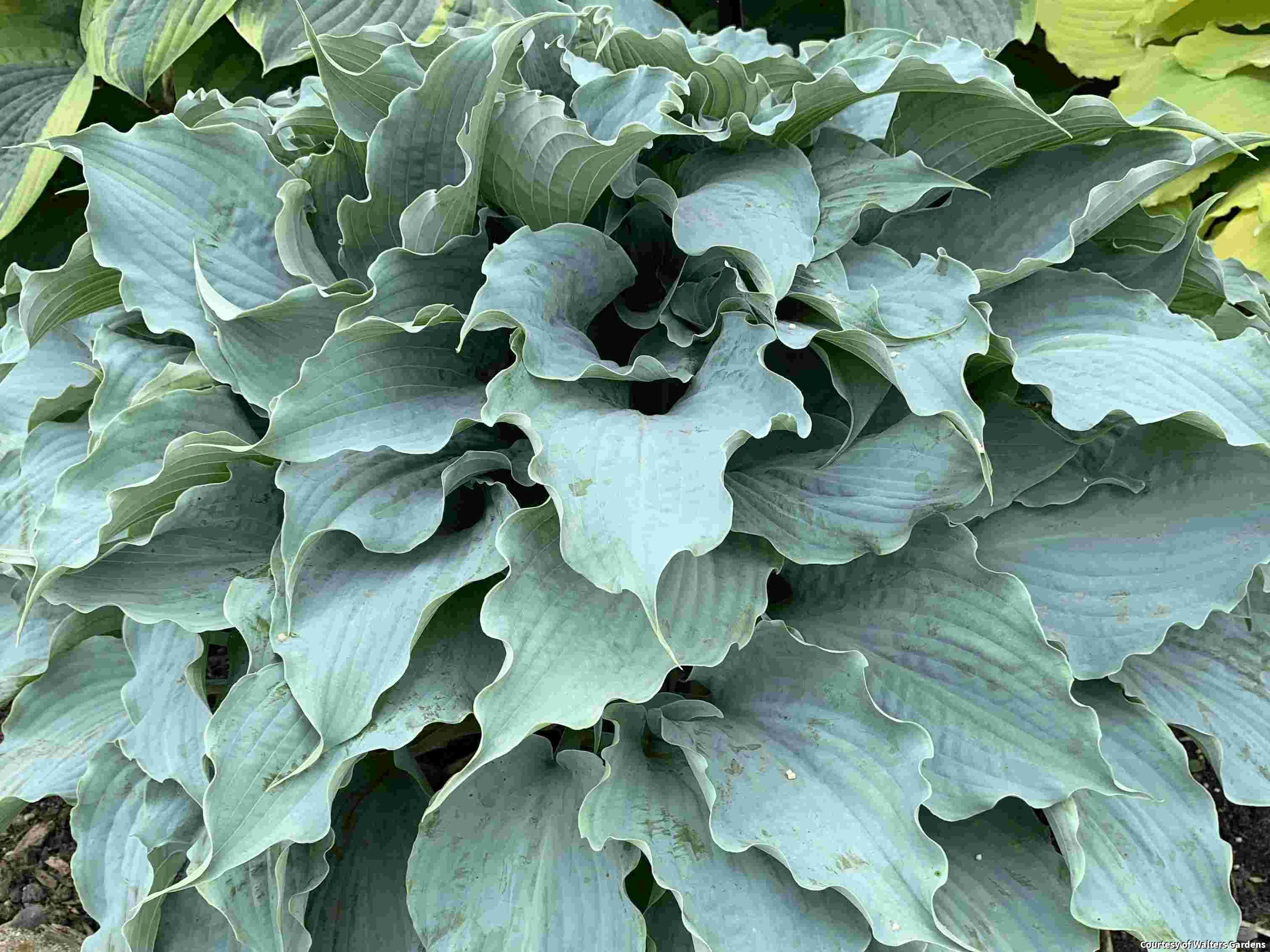 A beautiful blue hosta with heart-shaped leaves that have heavy waves on the edges. This beauty holds its color well through the season and is topped with nearly white flowers. Pair it with contrasting colored perennials or plant in groups for bold color.