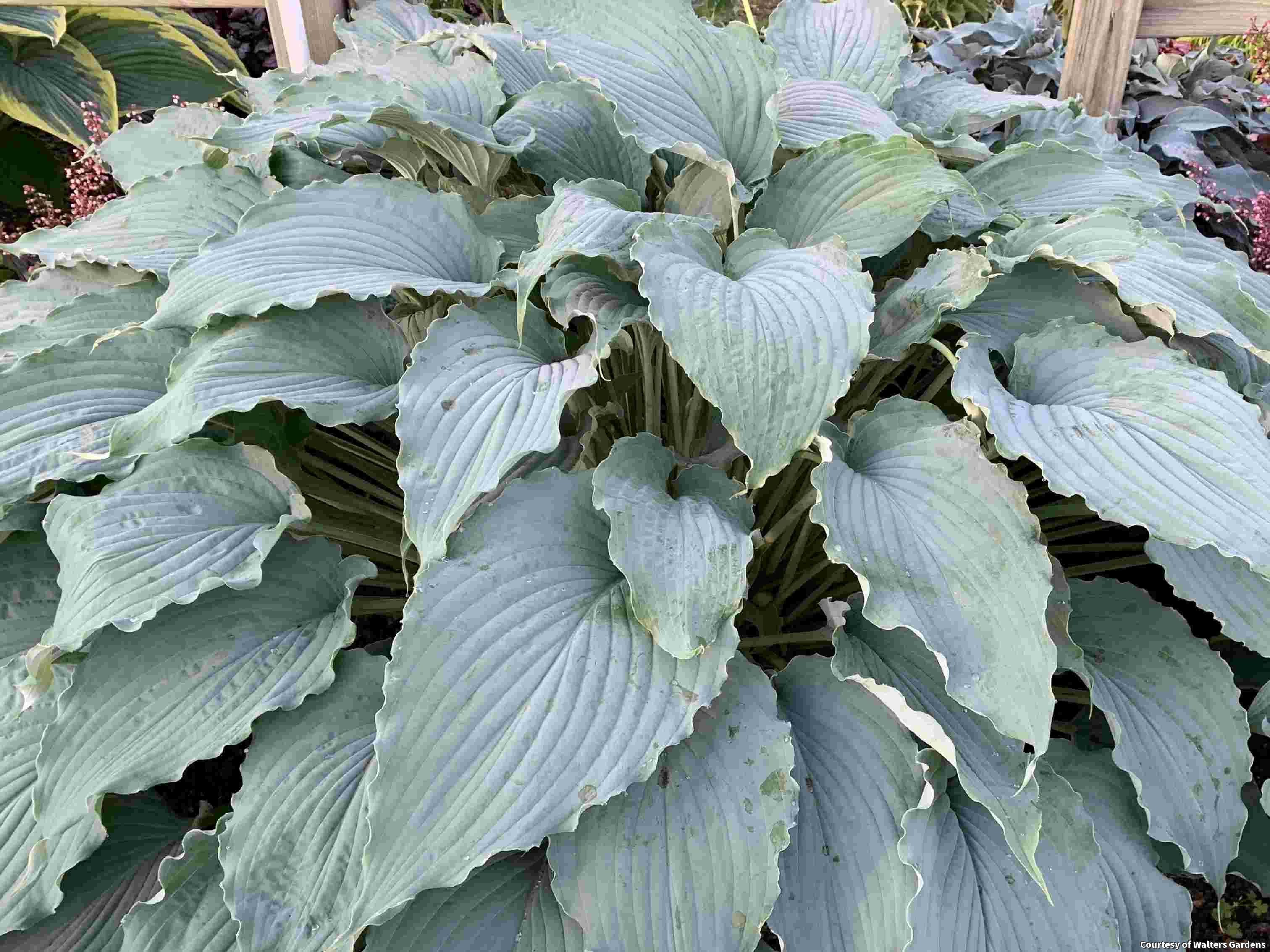 A large magestic selection with bold, heart-shaped blue leaves that have a small ripple on the edges. Pale lavender flowers add summer interest. Use as a focal point or plant in groups for a stunning show of color throughout the season.