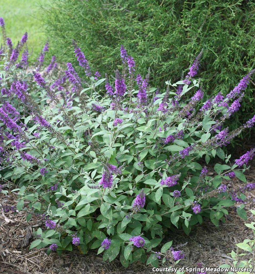 A miniature Butterfly Bush with prolific lavender-blue flowers that bloom from mid-summer through fall. Silver-green foliage backs the flowers. Incorporate into borders, beds and containers for great late season color.