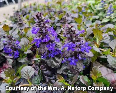 Striking oversized, dark purple, scalloped leaves make this Bugleweed a favorite. Purple-blue flowers on short spikes add additional interest in spring. It makes a fantastic groundcover or accent plant in containers.