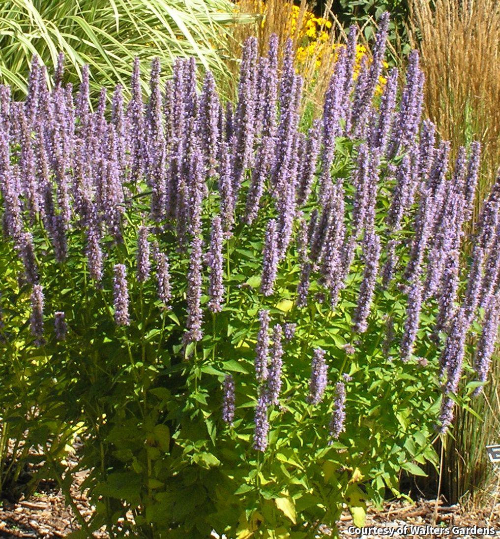 A tough, easy to grow perennial with lavender-blue flowers held on strong upright stems. It provides color late in the season when many other plants have finished. The aromatic foliage makes a wonderful tea. Honeybees and butterflies love this plant!