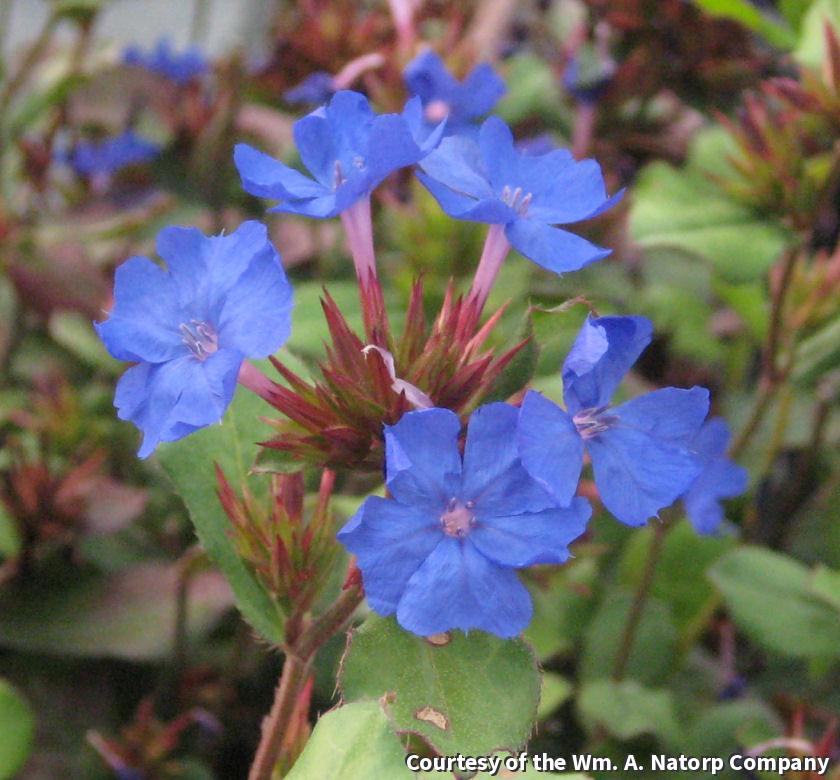 An old-fashioned, easy to grow perennial that provides amazing late season color with blue blooms and fabulous reddish-bronze fall leaf color. It may be used as a groundcover, edging plant or border addition in sunny spaces and part sun locations.