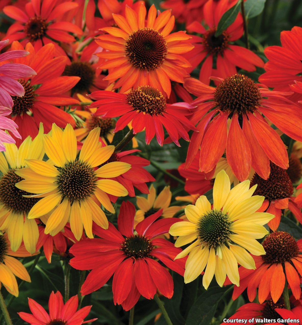 A mix of brightly colored Coneflowers that come true to seed. The mix includes rich shades of tomato red, orange, magenta, golden yellow and white. Add it to perennial beds and borders for rich summer color year after year.