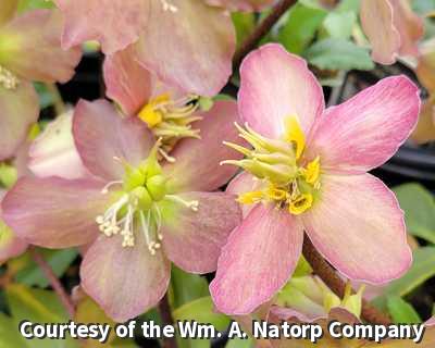 A semi-evergreen perennial with pure white winter blooms that turn rose-pink in cool weather. The deeply cut, glossy foliage provides year round interest. Add to shady borders, woodland gardens and north facing foundation plantings.