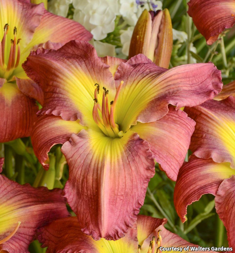 A highly fragrant choice with dusty lavender-mauve flowers with a distinct yellow throat. This reblooming variety is a profuse bloomer that performs well in sunny gardens with medium moisture.