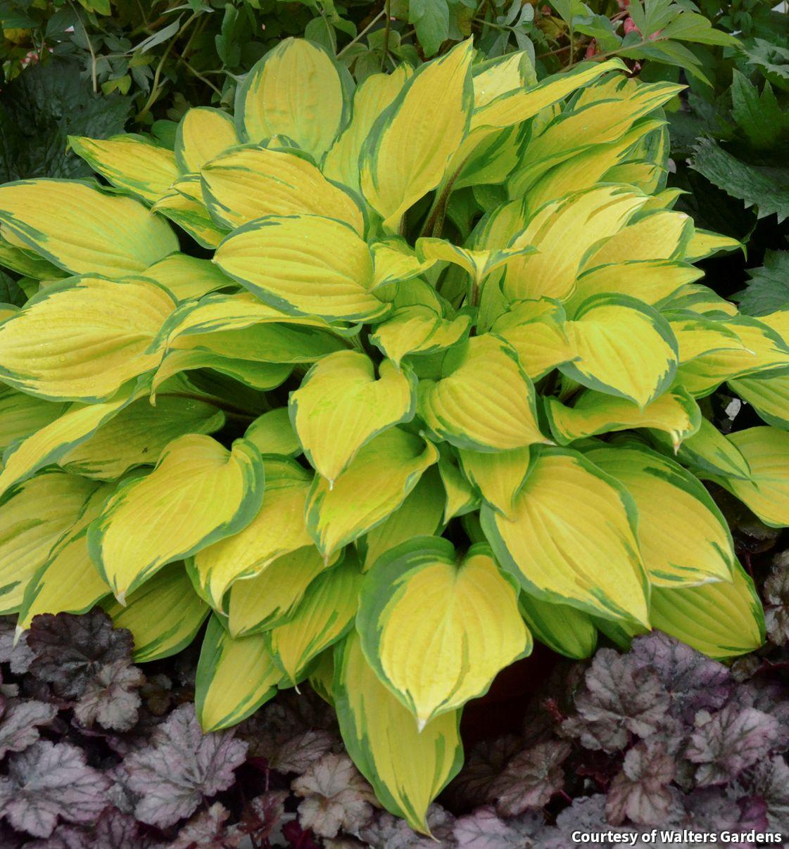 A refreshing Hosta with shiny, bright yellow leaves with a wide green edge and a wavy appearance. Place this one where it receives morning light and the color of the leaves will be even more intense. Enjoy it as a highlight in shady beds and borders.