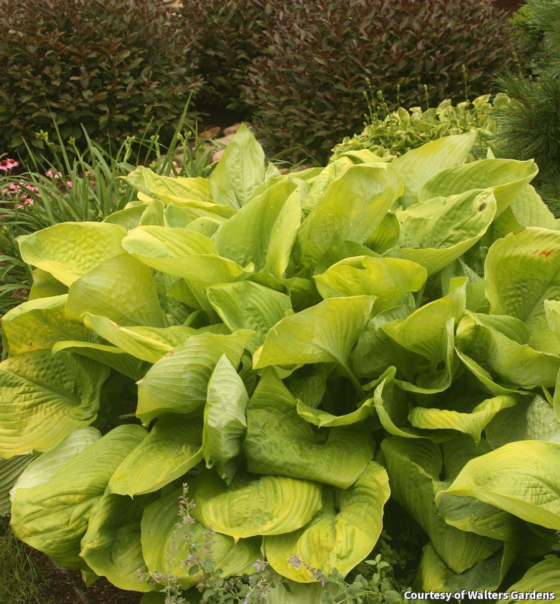 This amazing specimen style Hosta has large, glossy, chartreuse to yellow leaves with attractive corrugation. It is tolerant of some sun and has good slug resistant. Use as a focal point or plant in groups for a stunning garden display.