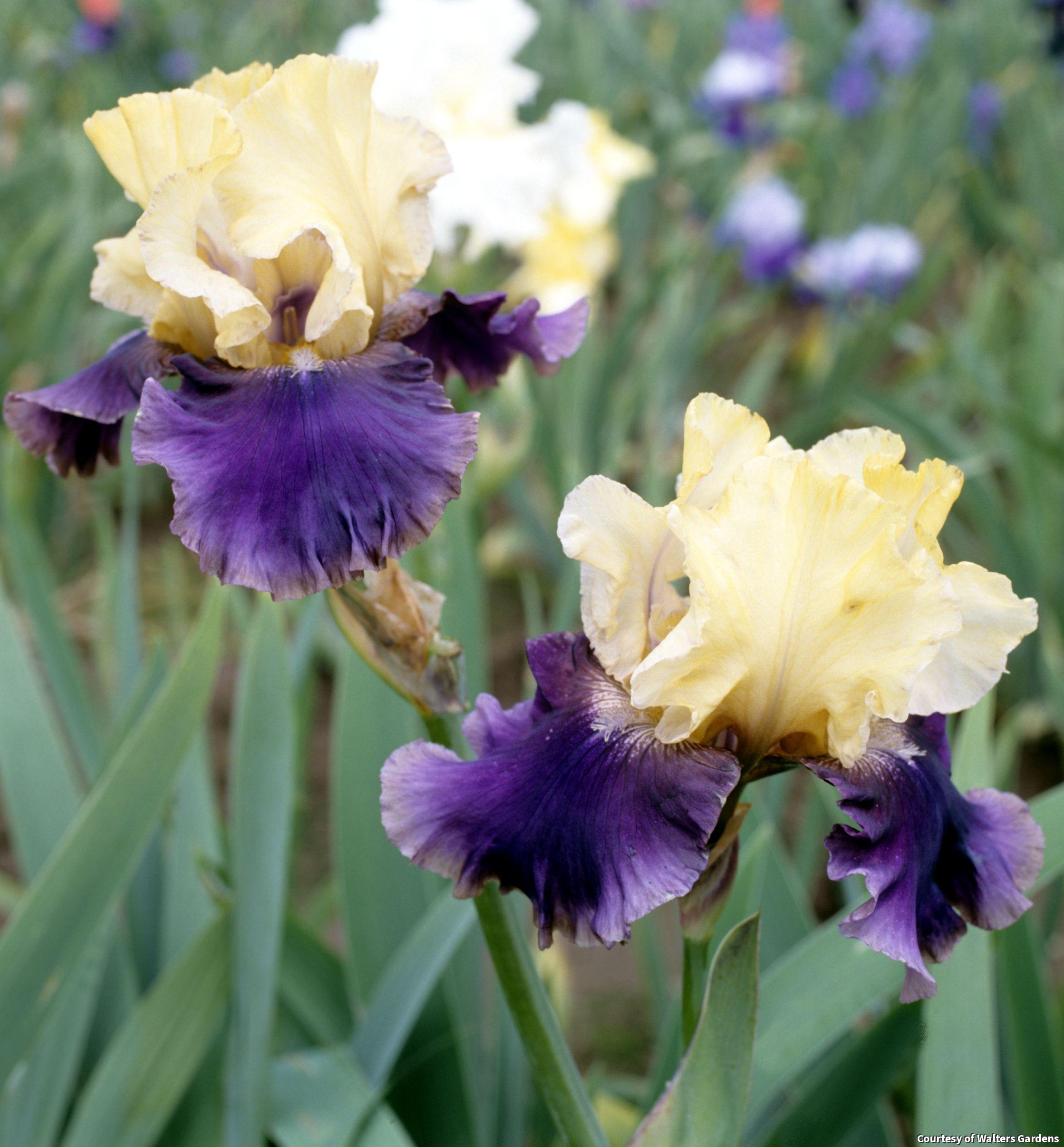 A bold, bicolored Iris with yellow and lavender-purple blooms. This repeat bloomer boasts of large, ruffled flowers that bloom heavily in spring and sporatically in fall. It makes a great cut flower, too.