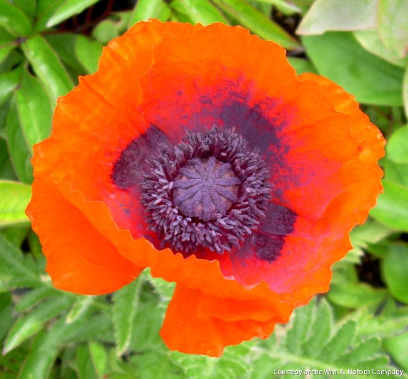 A traditional poppy variety with large, tangerine orange blooms with a dark purple center. The soft, crepe-like blooms are held on wiry stems and followed by interesting seed pods. Plant it in sunny garden spots and meadows.