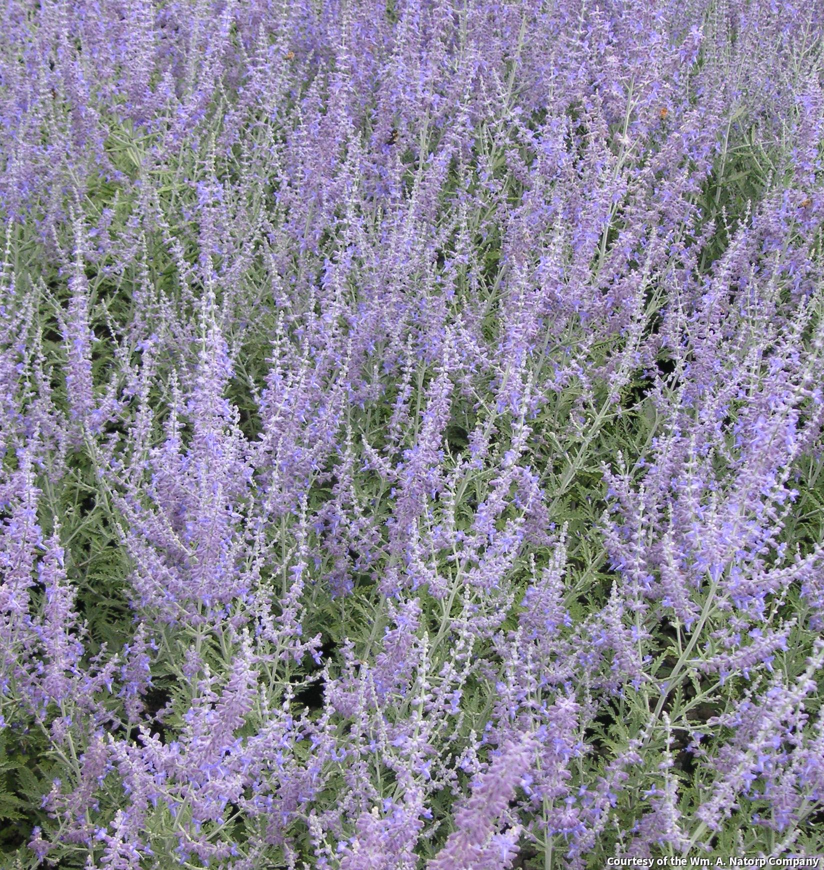 A semi-woody perennial with toothed gray-green leaves that are pungent when crushed. Airy spires of lavender-blue flowers bloom in late summer and last into early fall. This sun lover adds color and texture to beds and borders.