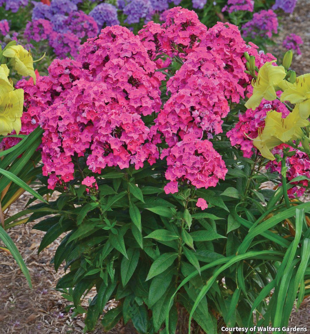 An excellent variety with hot coral pink blooms and bright green foliage. It has good excellent disease resistance and long standing blooms. Add it to beds and borders for a mid summer show.