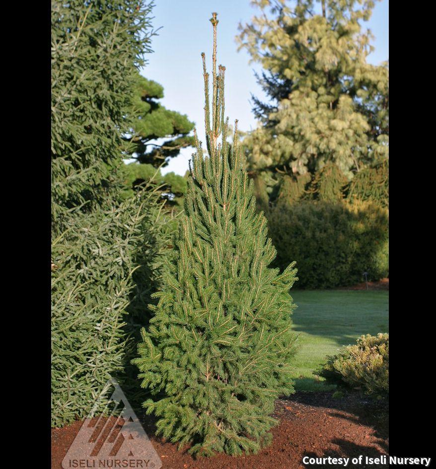 Medium sized evergreen with dark needles and a narrow, pyramidal shape. A good choice where a full sized tree is too large. Makes a good accent plant and is excellent for screening.