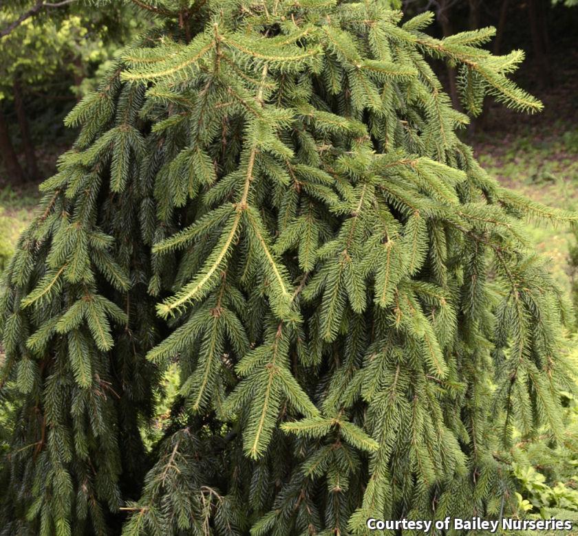 A beautiful weeping form of Norway Spruce. Each tree is unique and well suited as a speciment. May be grown in a creeping form or staked to create a beautiful weeping tree. Use for foundation plantings or as a focal point in beds and borders.