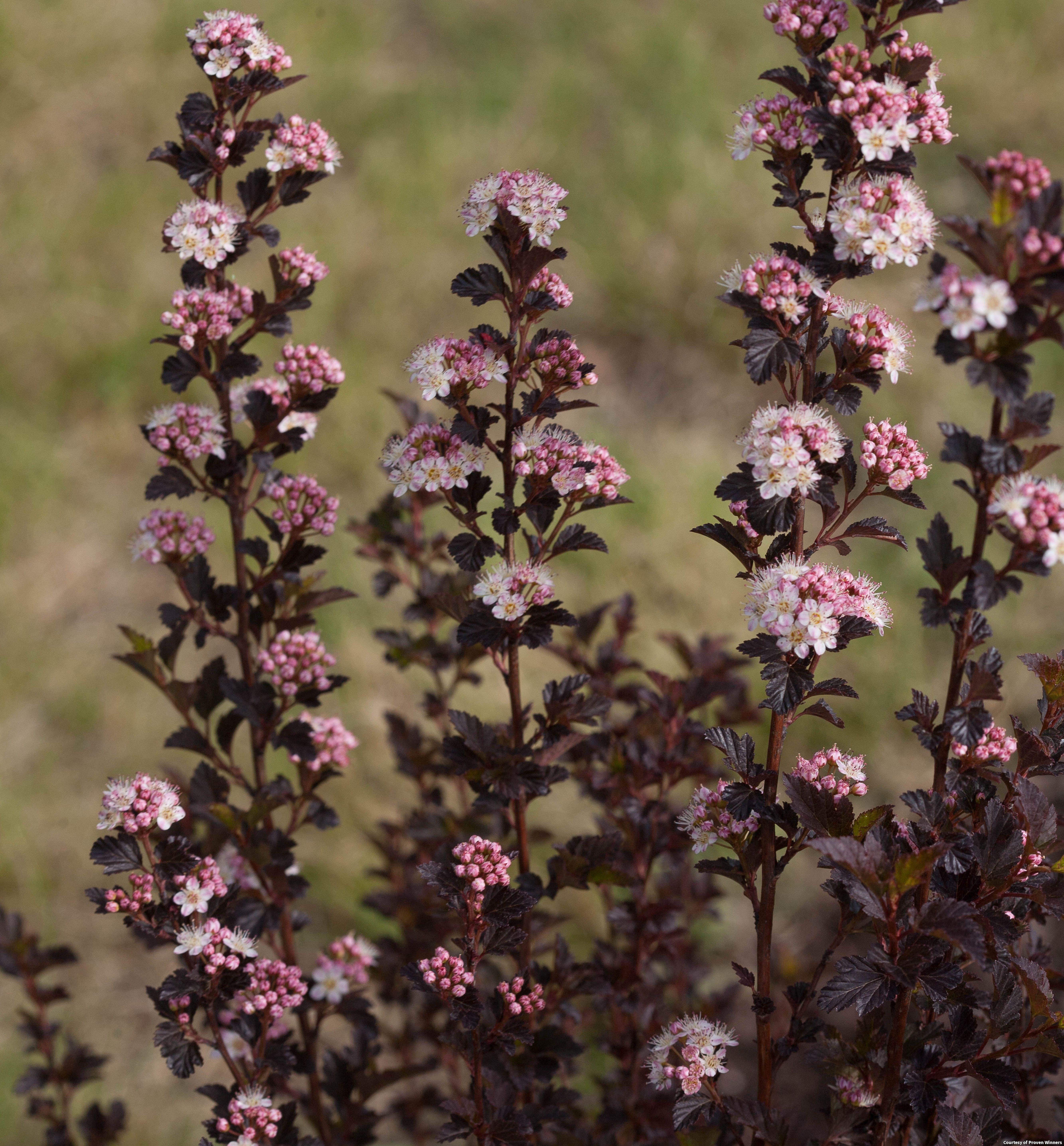 A smaller variety that adds color to the landscape from spring through fall. The refined foliage is dark maroon-bronze all season and contrasts well with the white summer flowers. It is bushy and suitable for foundation plantings, beds and mixed borders.