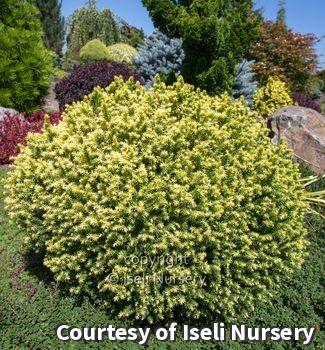 A bright accent for sunny garden spaces, this evergreen provides bright yellow foliage and naturally round form. Use it in rock gardens, borders and containers. It makes a beautiful focal point for foundation plantings as well.