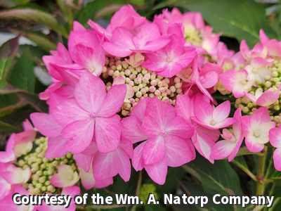 A delightful Hydrangea with flowers up and down the stems. It has strawberry pink or lavender flowers depending upon soil pH. It is easy to grow and just the right size for a focal point in foundation plantings and in mixed beds. Blooms on old & new wood.