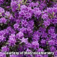 A compact, dwarf evergreen shrub with clusters of showy purple spring blooms. It enjoys moist, acidic soils and dappled sunlight. It makes an ideal accent plant for foundation plantings, beds and woodland sites.