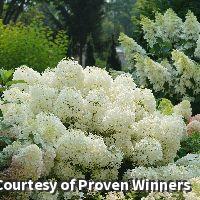 A fabulous summer blooming shrub with fluffy, pure white blooms that nearly cover the plant. The blooms age to lime green and then, produce extra white flowers. The strong stems hold the flowers upright. Great as an accent shrub or planted in masses.