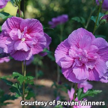 A summer blooming shrub with large dark lavender blooms with a lacy interior. It is tough and easy to grow in beds and borders and also, makes a beautiful hedge. It produces few or no seeds. A Proven Winners® Color Choice® selection.