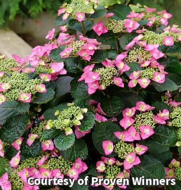 A petite variety that is big on bloom! Lacecap blooms are supported on burgundy stems and are pink or purple depending on the soil pH. These beauties are heat tolerant and add color to beds, borders and foundation plantings.