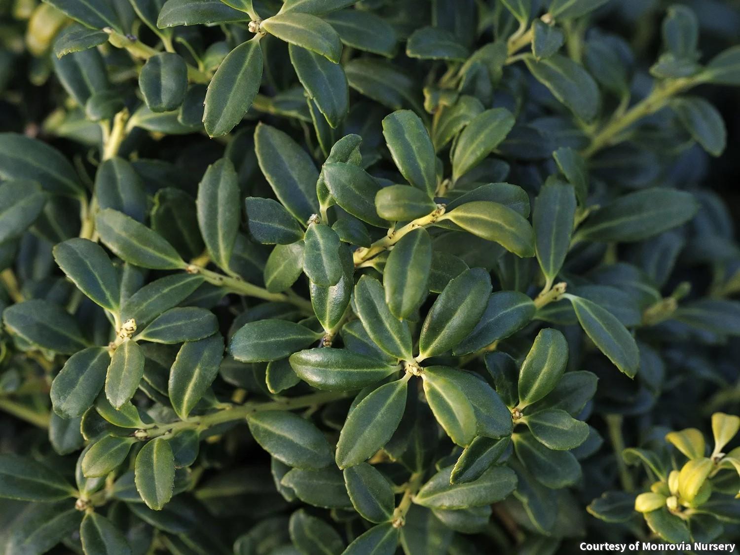 A dense, mounded evergreen with glossy green leaves year round and a moderate growth rate. It works well as foundation shrub, garden accent and along walkways. It may be pruned to maintain a smaller size. It grows best protected from winter winds.