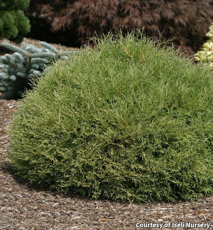 A perfect compact ball shaped evergreen with sage green foliage. The rounded shape and evergreen foliage make it a perfect foundation, accent shrub for beds and borders, or low hedge.