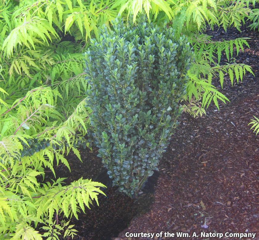 Columnar shaped Japanese holly with dark green evergreen foliage. Maintains a tight columnar habit. Excellent to accent a focal point of a house or garden. Protect from winter winds.