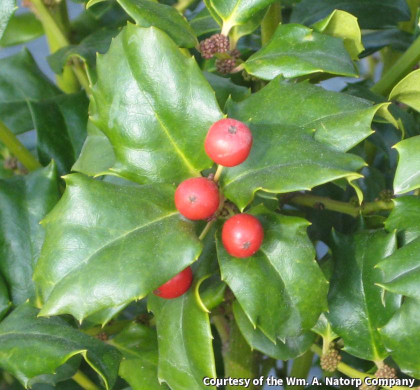 Evergreen shrub with glossy, bright-green leaves and attractive fall red berries. Slower growing and can be sheared to any dimension. Needs a male pollinator like 'China Boy' to produce fruit. Amend the soil with peat when planting.