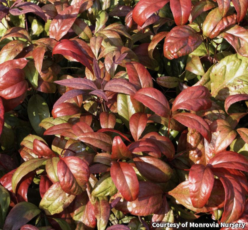 A beautiful, yet tough plant grown for its colorful foliage and ornamental fruit. The foliage is red-tinged in the summer and turns bright red in fall. It is semi-evergreen in the Tri-state and does best with some mulch to protect it in winter.