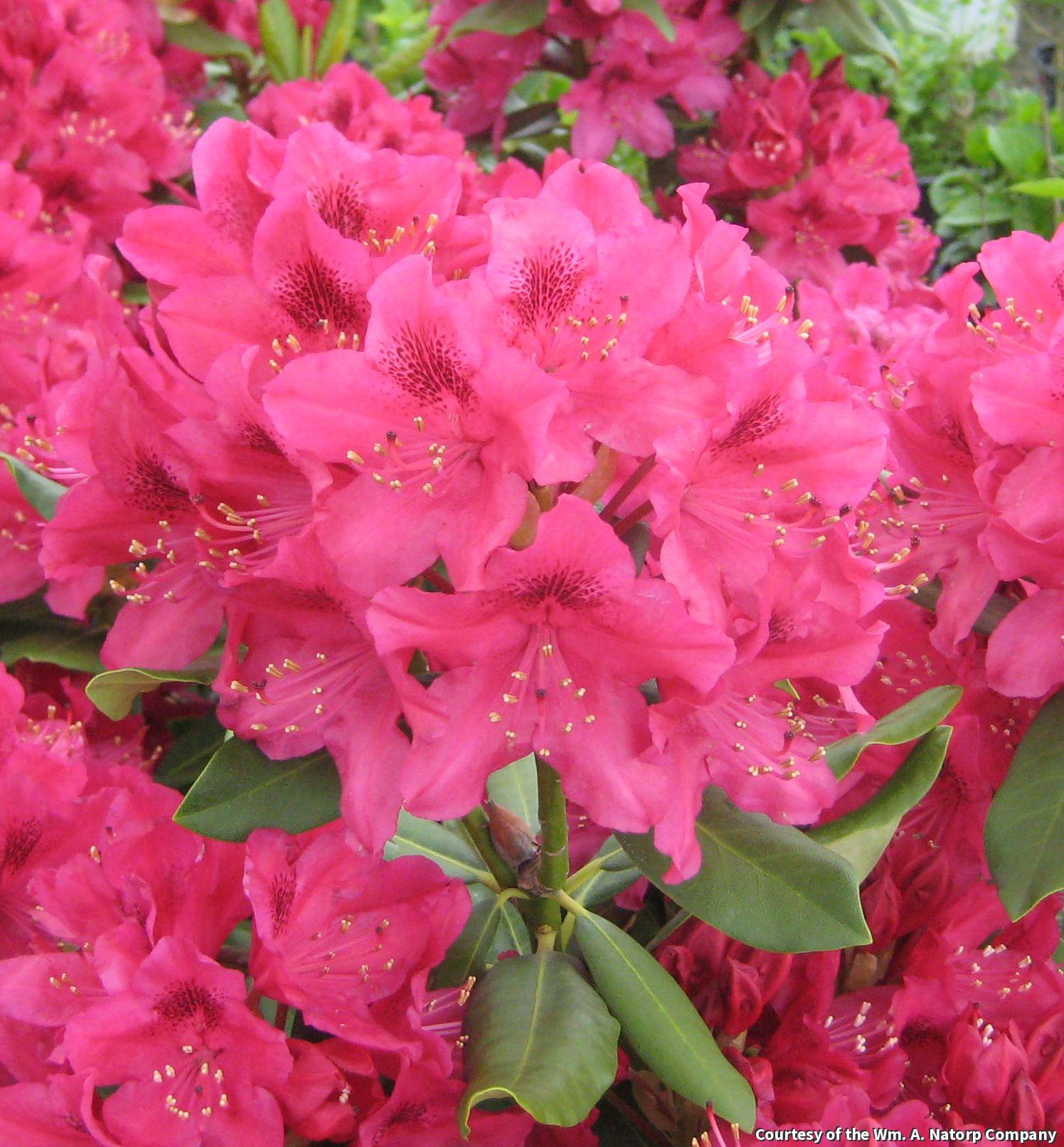 Large, hardy shrub with abundant rose-red spring blooms and large evergreen foliage. This is a good performer in the tri-state area and is reliably hardy. It prefers moist, well-drained, acidic soils and fits well into beds with dappled shade.