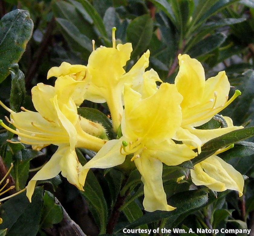 A very hardy selection of Azalea with scented, lemon yellow spring blooms. The blooms appear on bare branches and add bright color to the spring garden. It also has beautiful fall color. It grows best moist, acidic soils.