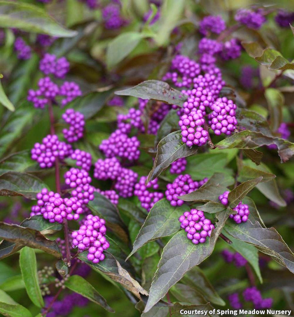This is one of the best shrubs for mid-fall color. Shiny, lavender-purple berries grace the arching branches and add a great end-of-season show. Add it to borders and foundation plantings or use as an informal low hedge.