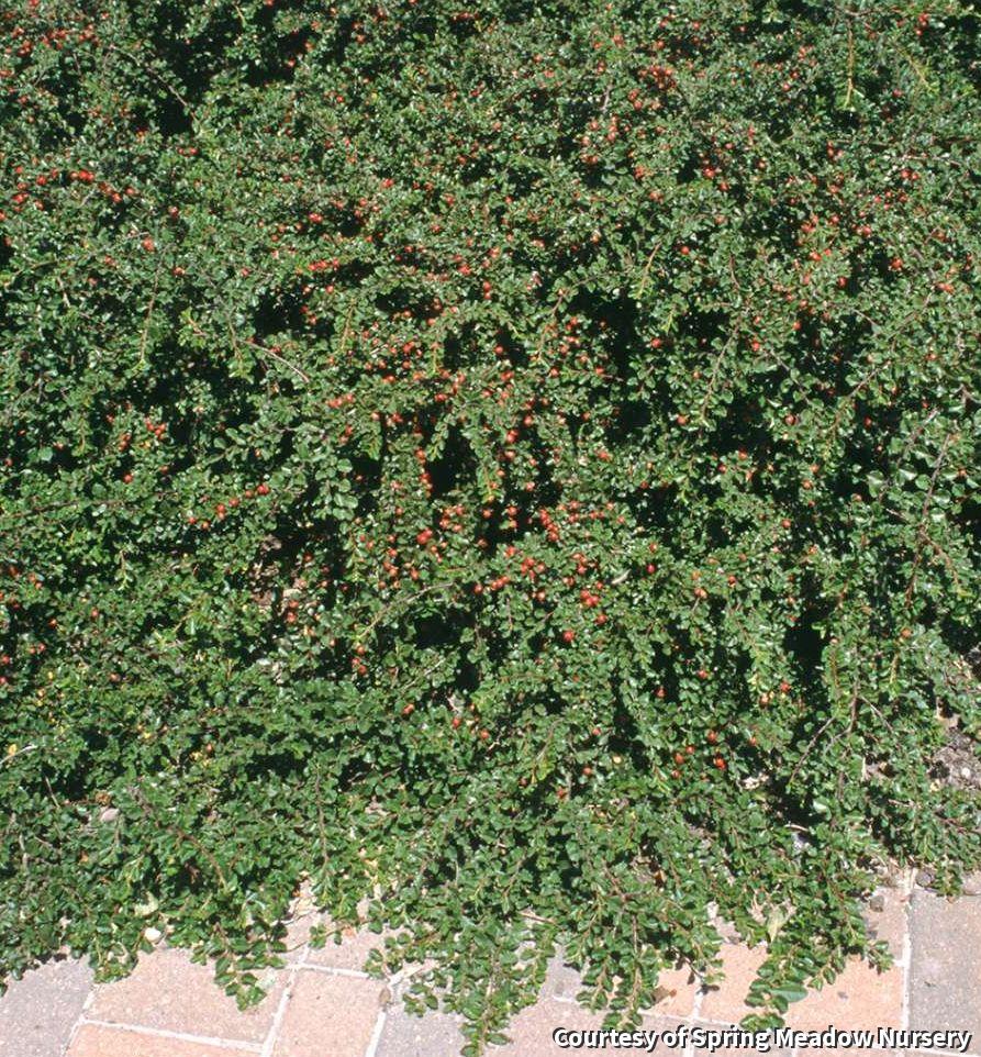 A dense, mounding, low-growing shrub with small, glossy leaves and good fall color. Its red berries add winter interest. It is easy to grow and great for erosion control, as groundcover and cascading over a wall.