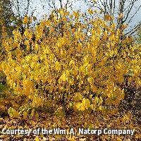 Beautiful native shrub that is excellent in mixed borders, natural gardens and groupings. Known as primary food for the Spicebush Swallowtail butterfly. Good golden yellow fall color and if planted in groups, has bright red fall berries.