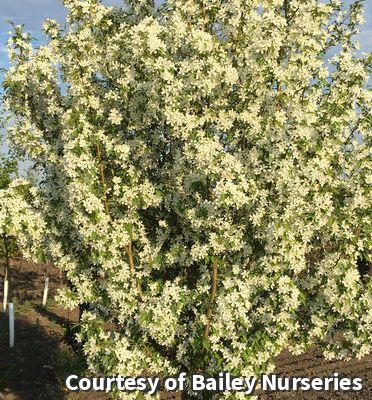 A beautiful, pyramidal variety with four season interest: pure white spring blooms, dark green summer foliage, clear yellow fall color and small red berries that last into winter. It is extremely disease resistant making it attractive in every season.