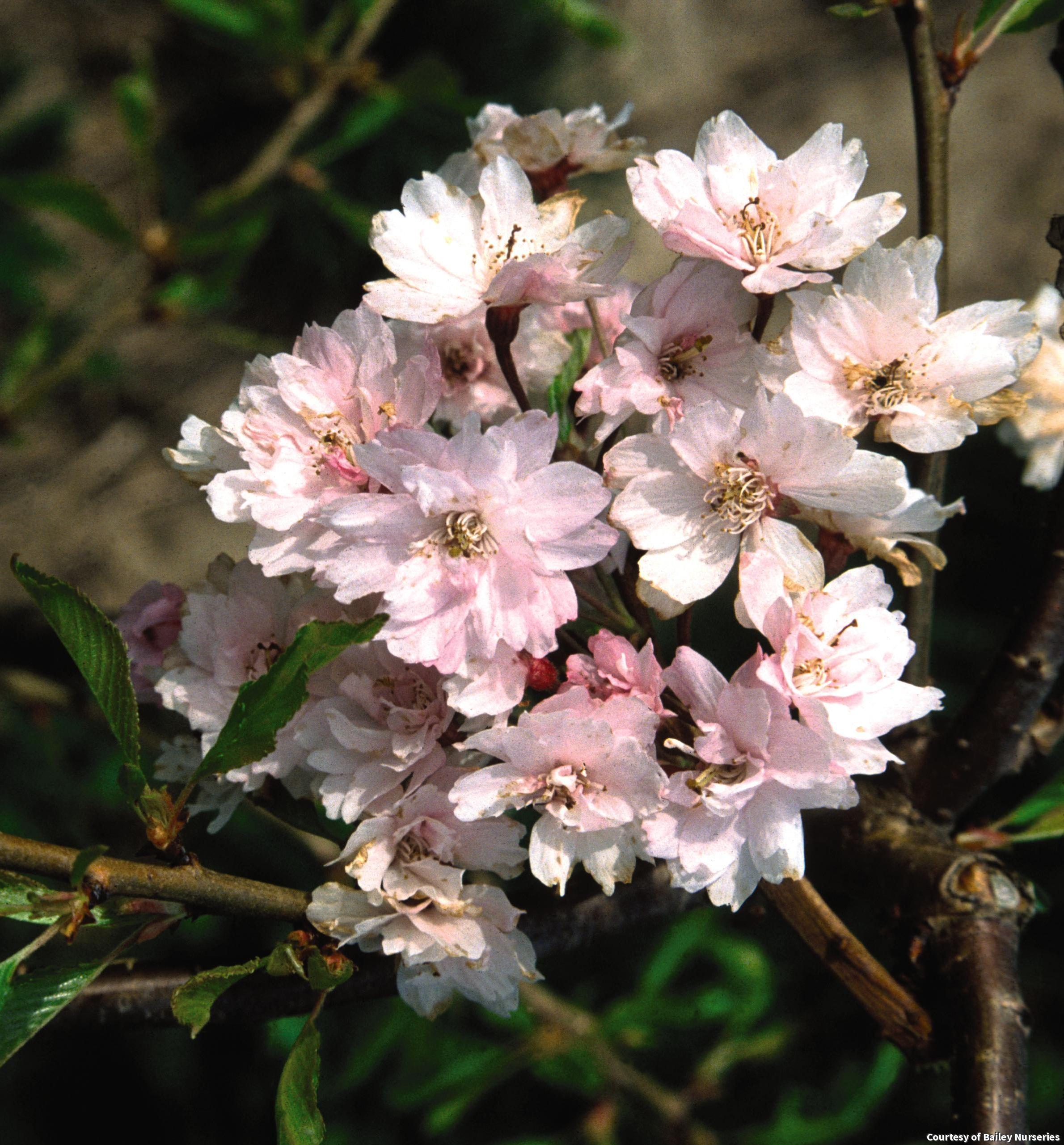 A weeping cherry from Japan with bright double pink flowers in mid-spring. It carries attractive green foliage through fall. This early flowering variety has a graceful form that makes a spectacular landscape focal point.
