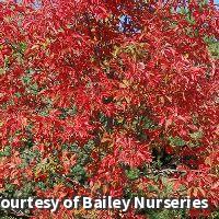 A spring blooming tree with showy yellow-green ornamental flowers, lush summer leaves and early bright red fall color. It is a low mess option with few nut seeds and has scorch resistant leaves. It makes a beautiful lawn tree or add to a mixed tree line.